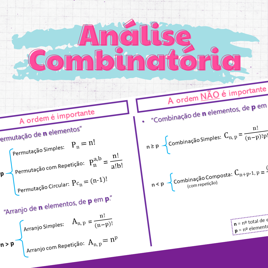 Este arquivo em PDF oferece um resumos das fórmulas da Análise Combinatória